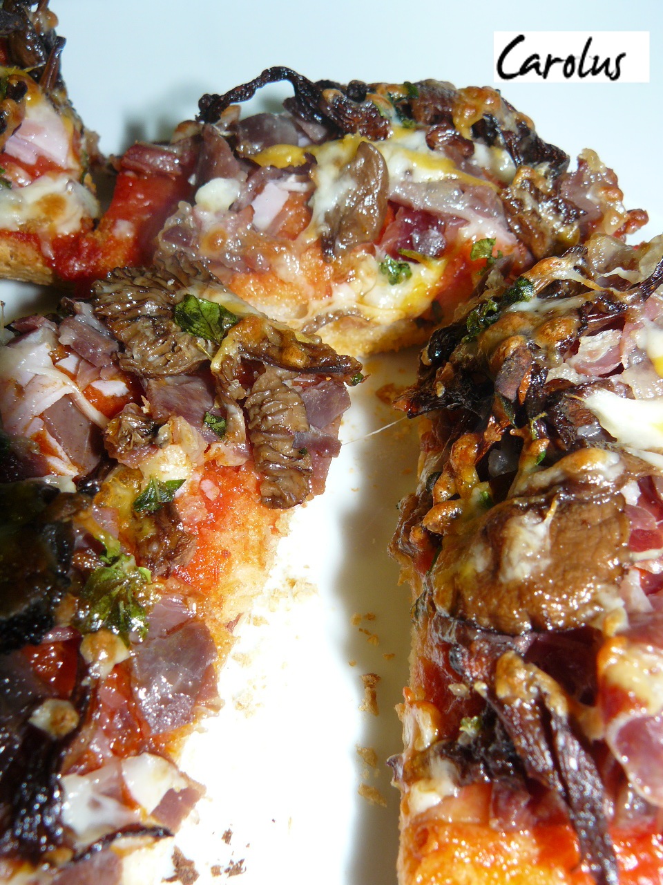 Esta misma noche he hecho un pan pizza de Jamón ibérico, ceps, chantarella con oregano fresco de Aromáticas Santa Luzia.