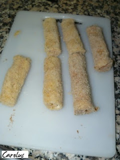 Los rollitos los pasmos por el huevo batido y los rebozamos en pan rallado