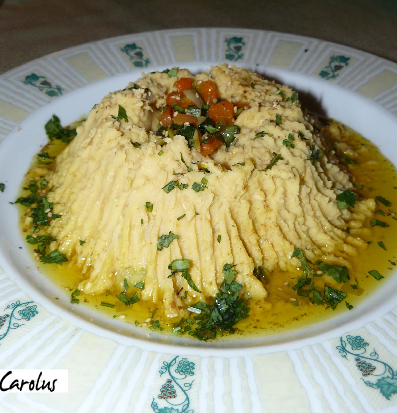 Continuamos con el plato, que tras leer el menú, me tenía mas intrigado, Volcán de humus con verduras en salsa de comino, mmmm que maravilla solo recordar esa combinación deliciosa, evocando mis recuerdos de mi visita a Marruecos, en ese momento toda la mesa empezó ha hablar de la comida árabe y de sus experiencias. Como veis una presentación sencilla pero muy cuidada, en el interior encontrábamos más verduras.